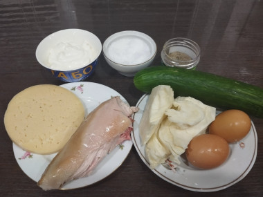 Салат с копченой грудкой и свежим огурцом