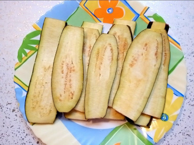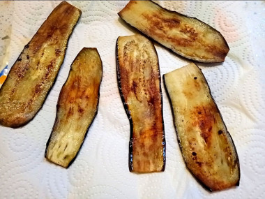 Готовые баклажаны переложите на тарелку и охладите. Если ломтики сильно промаслены, можете выложить их на салфетки, чтобы лишний жир впитался в бумагу.