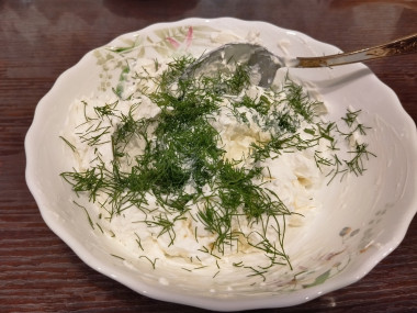 Зелень берите ту, которую любите или какая есть в наличии. Рыба хорошо сочетается с укропом, я его и взяла. Помойте и хорошо обсушите зелень. Лишняя влага сильно размочит лаваш. Острым ножом мелко порубите ее, предварительно оторвав грубые стебли.
