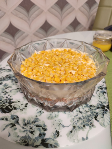 Делала такой салат, только не в слоеном варианте, а просто все перемешивала. Оочень вкусно получается. Советую!