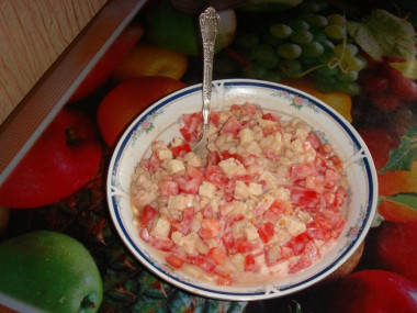 Также в качестве заправки можно использовать не только майонез, но и сметану или натуральный йогурт. Их можно взять по отдельности либо смешать с майонезом в любой пропорции на свой вкус - это снизит калорийность блюда.