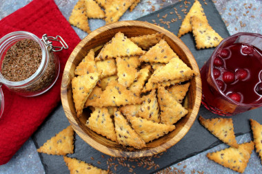 Очень вкусное Льняное печенье с льняными семечками, оно мне напомнило итальянские маленькие квадратные хлебцы, которые сейчас продаются во многих магазинах. Очень люблю утром выпить чашечку кофе с такими печенюшками. Чем-то они мне напоминают по вкусу крекер. Что касается самого рецепта, он отличный! Не отнимает много времени и сил, готовится очень легко. По-моему мнению, молока указано много, на полпорции мне понадобилось 70 мл. Соли мне показалось тоже немного многовато, но я всю еду, как правило, не досаливаю. А вот привкуса сушеного чеснока, который я решила добавить для аромата, я не учуяла, в следующий раз добавлю побольше. Жемчужинка, спасибо за отличный рецепт!