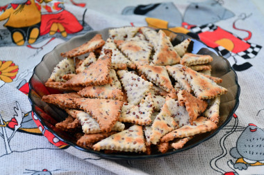 . Я вот только соли слегка перебавила. Но ни подсушенность, ни некоторая избыточная соленость в моем случае не испортили впечатление! Печенье очень вкусное, ароматное. Оно вкусное и если хрустящее, и если слегка мягкое. И даже соленость в тему. Тарелка с печеньем опустела у нас довольно быстро, очень нам понравилось!