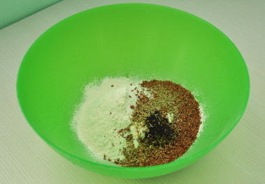 Добавьте остальные сухие ингредиенты. Я использовала в этот раз щепотку сухого чеснока для придания тонкого аромата. Добавить можно так же немного сухих итальянских трав, базилик и т.д.