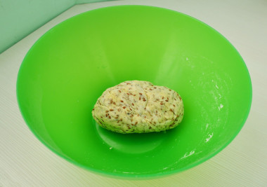 Если тесто не липнет к рукам, то скатайте его в шар, накройте пищевой плёнкой и уберите в холодильник.