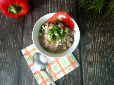 Куриные желудки со сметаной можно приготовить на обед или на ужин. Для того, чтобы желудки стали мягкие, я их готовлю не менее 40 минут. У меня на приготовление этого блюда ушло примерно 1 час. Для начала я промыла и очистила желудки. Затем обжариваю их минут 15 на сковороде с мелко нарезанным репчатым луком на растительном масле. Для соуса я соединила низкокалорийный домашний майонез с тëплой водой и хорошо размешала. На 0,5 стакана воды - 3 столовые ложки майонеза. Когда желудки обжарились, добавила в сковороду соус. И тушила под закрытой крышкой 40 минут. В конце посолила и добавила 0,5 столовой ложки сливочного масла. Вкус блюда получился нежно - сливочным и ароматным . Я добавила к готовому блюду измельчëнную зелень. По моему мнению именно к этому блюду подойдëт зелёный лук. А на гарнир можно подать с пюре. Приятного аппетита 🙂