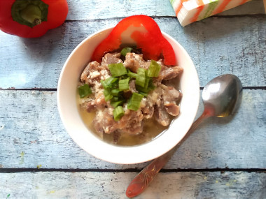 Предварительно отварила желудочки в воде. Тушила с большим количеством лука и добавила грибочки (шампиньоны),а соус на основе бульона от желудочков и с добавлением горчицы и майонеза. Все очень вкусно, а аромат на весь дом(супер)!!!! Гарниром была гречневая каша.Все было вкусно, что не успела сделать фотку. :)