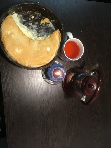 Через 2 часа на поверхности пирога выступит множество карамельных капелек, похожих на слезы. Можно звать всех к столу и восхищаться внешним видом и вкусом пирога. Приятного аппетита!