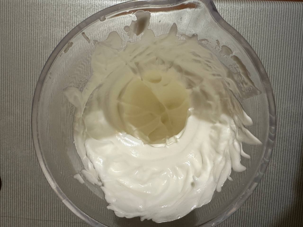 Я так понимаю сверху должна получится меренга. Но из данных ингредиентов получается не меренга, а белковый омлет. Где то недоработка .