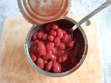 Часть фасоли отсыпьте в другую миску и разомните толкушкой в пюре. Это сделает суп более вязким, он приобретет яркий вкус бобов.