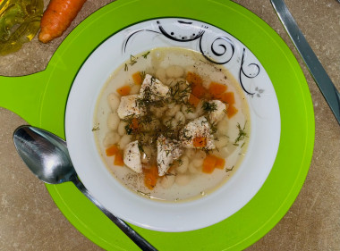 Я обычно выбираю рецепты по продуктам, которые есть в доме, если заранее не купила. И вот у меня есть белая сухая фасоль, филе, морковь и этот рецепт супа с фасолью и курицей. Фасоль я как всегда забыла замочить на ночь, но это не проблема, замачиваю на часа 4 и также варю 1 час, я хотела жидкий супчик, поэтому фасоль потолкла очень малое количество. Ммм, супчик просто объедение 😋, очень вкусный, вкус чем-то напомнил уху, мне кажется этот необычный вкус из-за целого вареного лука. С большим удовольствием поела, спасибо, что делитесь вкусными рецептами.