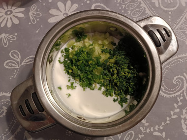Укроп, петрушку и кинзу мелко порубите. Набор зелени можете подбирать, дополнять или заменять по своему вкусу. Можете добавить еще мяту, шпинат, черемшу и т.д.
