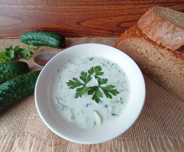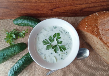 У нас сейчас жара под 40 градусов, и рецепт холодного супа на кефире с огурцом оказался очень кстати! На его приготовление ушло всего несколько минут, не нужно ничего отваривать. Лёгкий, освежающий, с пикантной чесночной ноткой , ароматом огурчика и свежей зелени ( только кинзу не добавляла- не все у нас её любят). С удовольствием буду готовить такой суп ещё! Спасибо за рецепт, Мария!