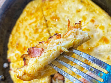 Для меня омлет с ветчиной и сыром на сковороде лучшее начало дня! Это вкусно, сытно и питательно. Я практически каждый день завтракаю яйцами и конечно хочется разнообразия в их приготовлении. Добавление ветчины, сыра и помидор делает омлет ярким на вкус, сочным и в меру плотным по консистенции. Автору рецепта хочется сказать спасибо за рецепт!