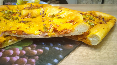 Простой, быстрый рецепт очень вкусной пиццы. Теста я замесила чуть больше, спасибо калькулятору сайта, мгновенно пересчитал количество продуктов на нужную мне порцию, очень удобно. Тесто хорошо поднялось, раскатала его на весь противень. В начинку добавила ещё оливки. У меня получились пышные бортики. Шампиньоны, как и автор рецепта, я не мою никогда, просто протираю их аккуратно тряпочкой или губкой. Нас пицца по этому рецепту порадовала, получилась сытная, большая, очень вкусная.