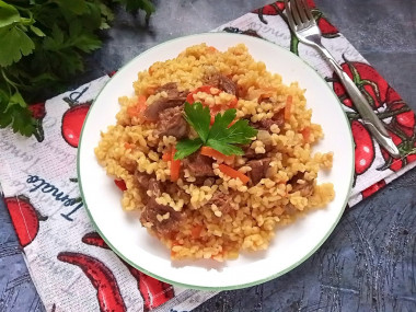 Мы любим булгур, поэтому стараюсь готовить его почаще. В этот раз сделала сытный и очень вкусный булгур с говядиной.