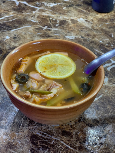 Какой суп приготовить после застолья, когда осталось множество различной мясной закуски?! Конечно, это солянка. Спасибо за рецепт.