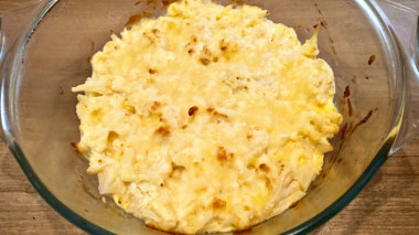 Твердый сыр можно заменить на моцареллу, которая также хорошо плавится в духовке, тянется и не образует корки на поверхности блюда.