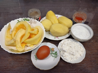 Калорийность продуктов: Картошка, Яйца, Кабачки, Перец черный молотый, Растительное масло, Соль, Пшеничная мука