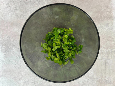 Приготовьте маринад. Зелень помойте, обсушите, оборвите толстые стебли. Мелко порубите ее.