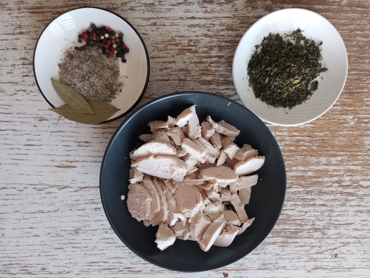 Готовое куриное филе выньте из бульона и нарежьте небольшими кусочками.
