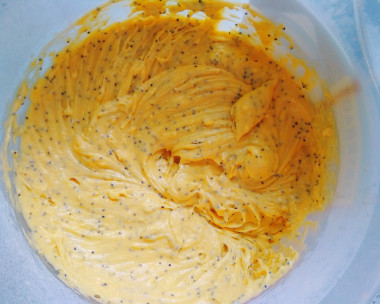 Как сделать лимонный кекс с маком и куркумой? Отмерьте необходимые ингредиенты. Сливочное масло должно быть размягченным, поэтому достаньте его из холодильника заранее.
