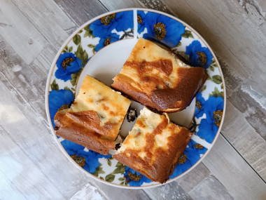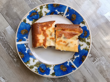 Выпекайте запеканку в духовке, предварительно разогретой до t 180°С, от 30 до 50 минут. Точное время будет зависеть от особенностей вашей духовки и толщины запеканки. Она должна стать золотистой. Готовую запеканку выньте из духовки и остудите.