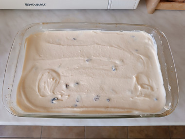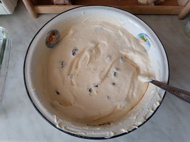 Творог с яйцами и сметанкой взбивала миксером, чтобы была однородная структура. В конце добавила изюм. Получилась вкуснейшая творожная запеканка. Вся семья довольна!