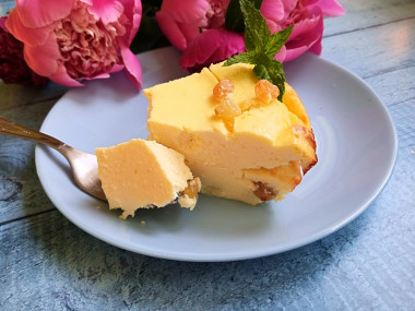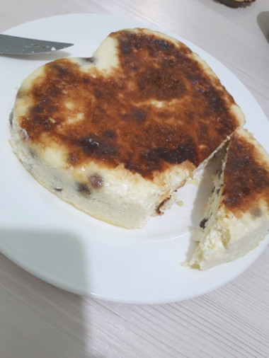 Дочка очень просила творожную запеканку, уж больно она ее любит. Да и вся наша семья не против полакомиться этим полезным чудом на завтрак) Из большого количества рецептов на сайте выбрала творожную запеканку с изюмом и сметаной без муки и манки. Я сама больше всего люблю запеканку на крахмале, а с кукурузным она ещё нежнее получается. Количество продуктов я увеличила в 1,5 раза. Форму использовала 21 см. в диаметре. При этом запеканка получилась действительно пышной и высокой. Творог был домашний, жирный. Он легко взбился блендером вместе с желтками и сахаром. Белки тоже отдельно взбила миксером. Только вот немного перепутала шаги и добавила изюм в уже готовую творожную массу. Но я осторожно вмешала изюм и тесто не осело) Выпекала 30 минут, не стала дожидаться румяной корочки как обычно. Форму слегка потрясла, стало понятно, что творог стабилизировался. Дальше не запекала, мне понравился такой вид) На фото кусочек ещё чуть теплый. Это я к тому, что запеканка держит форму даже в теплом виде! После охлаждения вообще чудо! Невероятно нежная, воздушная, однородная. На вкус в меру сладкая и очень приятная! Рецепт удачный, рекомендую. Спасибо, запеканка вкуснейшая!