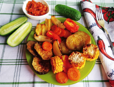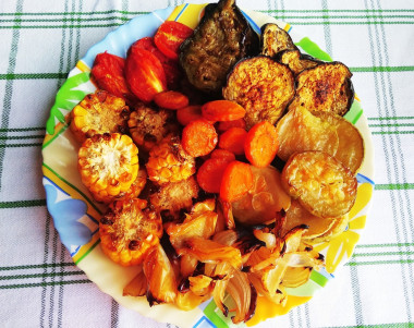 Овощи на гриле по этому рецепту очень понравились моему мужу. Пришел с работы с съел всю тарелку, я только кусочек кукурузы ухватила) Муж сказал, что сказочно вкусно, надо почаще такое готовить. Мне кукуруза тоже понравилась))) К овощам я еще добавила кабачок. Получился большой противень. Для приготовления маринада у меня не нашлось винного уксуса, поэтому я его заменила на рисовый, я думаю, к соевому соусу он отлично подходит. Аромат маринада потрясающий, да и овощи получились сочными и вкусными. Главное следить за грилем. Однозначно всем рекомендую рецепт!