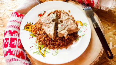 Получилось очень вкусно и сытно. Мясо нежное и мягкое и в моём случае отлично отходит от кости. Соус нежный с приятными сливочными нотками. Подавала свинину в сметанном соусе с гречкой.