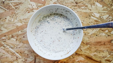 В сметану добавьте воду, муку и специи и тщательно перемешайте, разбивая все комочки. Если вам хочется, чтобы соуса было больше, можете увеличить количество сметаны и воды в 1,5 раза. Сметана подойдет любой жирности. У меня 15%. Добавление муки и воды, во-первых, загустит соус, а во-вторых, не позволит сметане свернуться. Тонкости приготовления соуса из сметаны вы узнаете прочитав статью в конце рецепта.