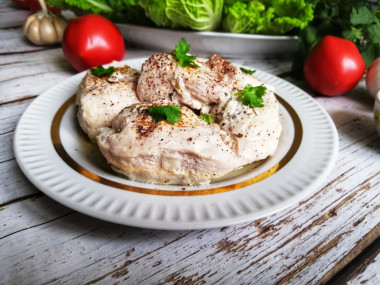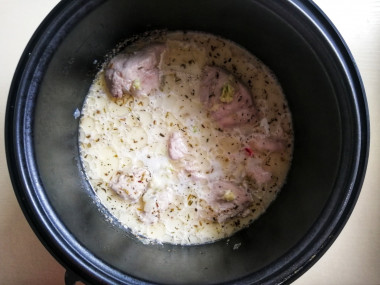 В раздумьях, что бы приготовить из куриной грудки, зашла на сайт и увидела этот рецепт. Раньше готовила курицу в сливочном соусе, но на сковороде. А сегодня попробовала сделать в мультиварке. Для соуса взяла сметану жирностью 20%, заменив ею сливки, муку в соус добавлять не стала, чтобы он остался легким и более прозрачным. Из специй использовала прованские травы.