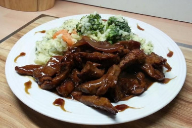 По вашему рецепту я готовила только мясо, без овощей, то есть без гарнира. И нарезку делала по-другому. Но мне очень понравилось блюдо! Свинина идеально подходит почти под любые гарниры из крупы. Домашние ели ее с картофельным пюре, а я - с рисом и вареной брокколи. До сих пор я как-то мало внимания уделяла соусу Терияки, в магазинах всегда проходила мимо. А тут решила попробовать и такая вкуснота! Спасибо большое за рецепт, он в списке моих любимых!