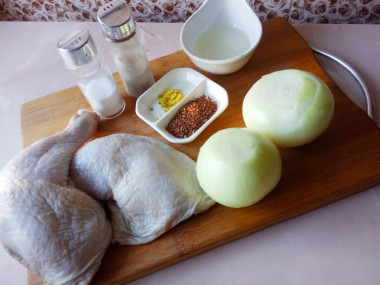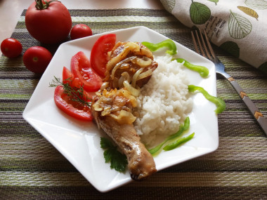 Окорочка решила приготовить по рецепту курица с луком на сковороде жареная. Рецепт простой, с минимумом ингредиентов. Кусочки курицы за счёт обжарки на раскаленном масле получились румяные, аппетитные и сочные. Лук мы любим, в сочетании с мясом- особенно))), поэтому данный рецепт понравился. Спасибо, sharlis!