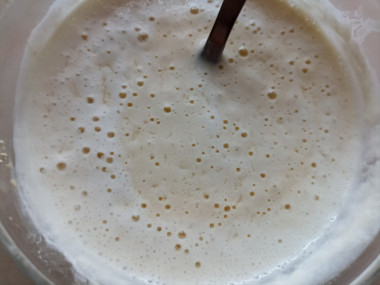 Перелейте яйцо к дрожжевой смеси и перемешайте.