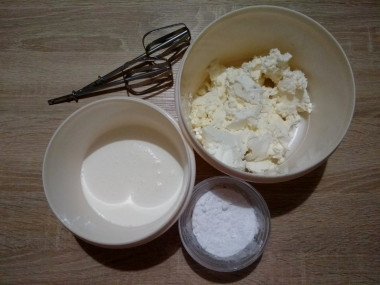 При взбивании сливок главное не переусердствовать и не сделать из них масло. Выложите в сливки сыр.