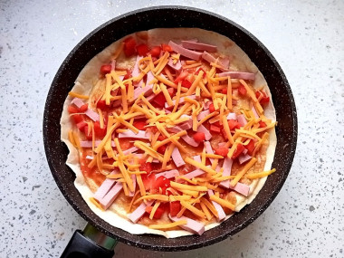Пицца на сковороде из лаваша с яйцом