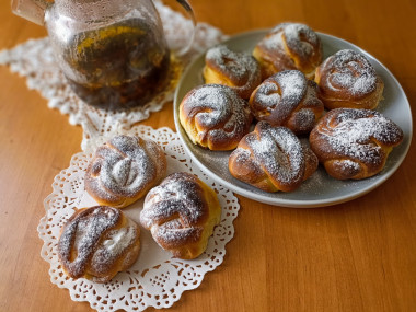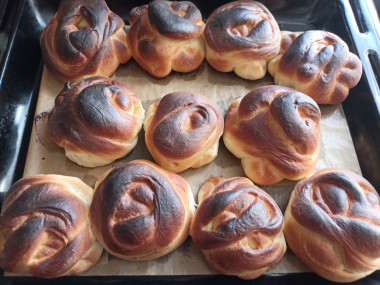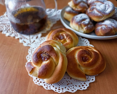 Очень красивые и вкусные булочки. Понравились! Тесто такое нежное получается. Готовится, в принципе, быстро и вкусно. А пошаговые фото значительно упрощают процесс приготовления.
