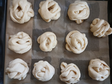 6. Сбрызните булочки розочки водой и накройте салфеткой.