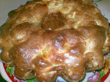 Готовый пирог выньте из формы, нарежьте на кусочки и сразу же подавайте к столу. Приятного аппетита!