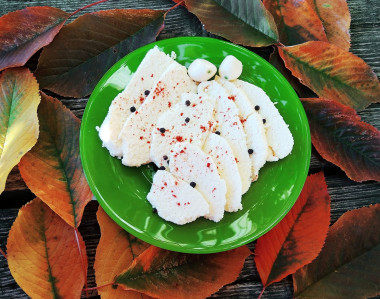 Сыр из молока и кефира без яиц сделаный в домашних условиях своими руками из натуральных ингредиентов - прекрасная закуска к молодому белому вину.