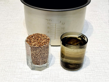 Как сварить гречневую кашу в мультиварке на воде? Подготовьте продукты. Количество воды можете увеличить (но не уменьшить). Пропорция 1:2 дана для рассыпчатой гречневой каши. Для более вязкой сделайте 1:2,5. Или больше, определите это опытным путем.