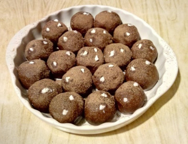 Конечно, если вы будете делать пирожные на праздничный стол их лучше лепить ровные, аккуратные, как в магазине. А если вы готовите с детьми, для воскресного чаепития, то тут можно дать волю фантазии - картошка бывает разных размеров и форм. У меня получилось 14 пирожных примерно одинакового размера. Орехи можно взять любые: фундук, грецкий или миндаль. А можно обойтись и без них.