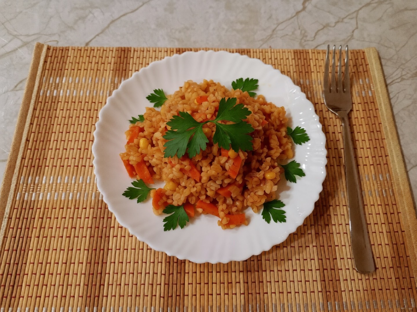 Приготовила булгур в качестве гарнира к рыбе. Этот рецепт привлек своей простотой и доступными ингредиентами.