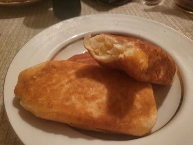 Замечательный рецепт, тесто хрустящее снаружи, а внутри мягкое картофельное пюре, по рецепту у меня получилось 12 средних пирожков, но я раскатывала очень тоненько. Тесто прекрасное, не липнет, очень легко раскалывается и не рвется, правда я дала тесту постоять примерно полчаса, оно немного поднялось