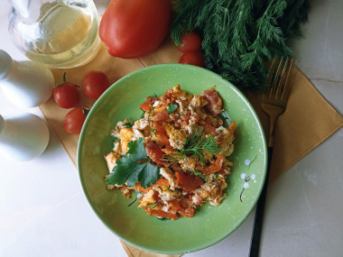 Необычное название меня заинтересовало. Решила приготовить менемен турецкий омлет по этому рецепту. Простейшее приготовление мне очень понравилось. А вкус просто сногсшибательный! Решила делать сразу 2 порции, удвоив продукты, уж больно аппетитно выглядит менемен на фото и описание заманчивое)