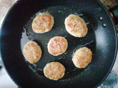 Выкладывайте котлеты на небольшом расстоянии друг от друга в сковороду с разогретым растительным маслом и обжаривайте их с двух сторон на средней температуре плиты до золотистой корочки.