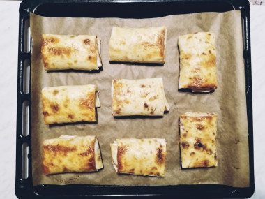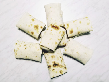 Таким же способом заверните остальные конвертики. Завернуть можно и другим способом, например, квадратиками или треугольниками (если используете круглый лаваш).