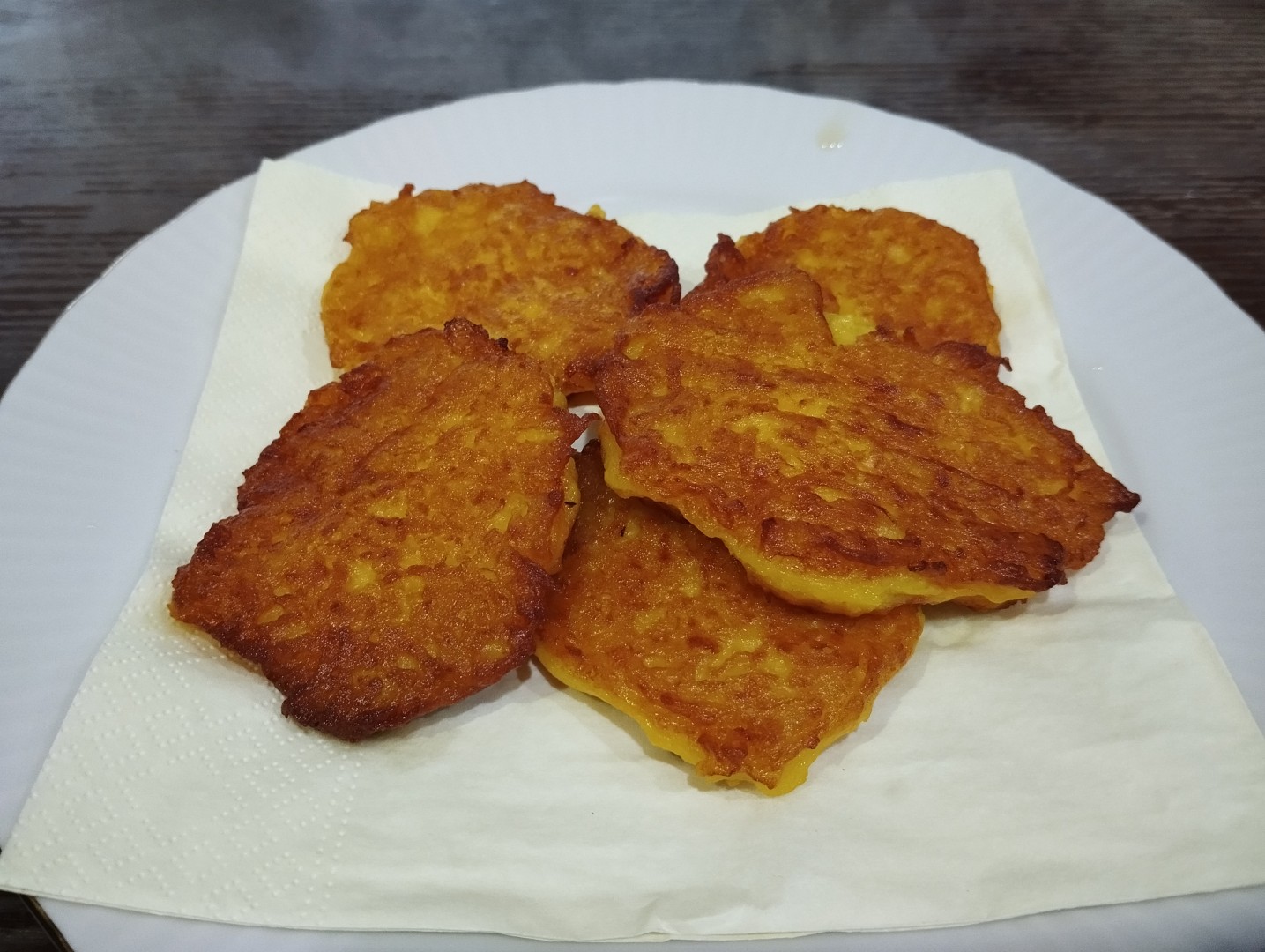 Ем с удовольствие тыкву! Нравяться блюда из тыквы! Не люблю конечно жареное, но иногда хочется!!! 🙂 Ингредиентов я взяла больше. Зачем мораться 300 гр 🤣. Я взяла 1 кг тертой тыквы и т.д. Пшеничную муку я заменила на рисовую и кукурузную муку. Жарила на соевом масле. Получилось вкусно, мне понравилось. Мои тыкву не любят, мне достанется все🤣